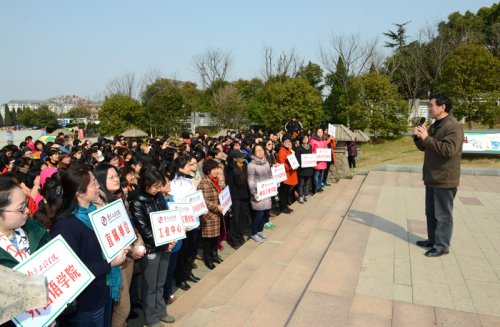 三月的南京,梅花争妍,春意初露,正是外出踏青好时节。3月5日下午,在第104个“三八”国际劳动妇女节即将来临之际,我校一年一度的庆“三八”方山健身行活动在方山地质公园如期举行。校党委书记吴建华与全校500多名女教职工兴致勃勃地参加了此次活动。校党委副书记、纪委书记王书城也来到活动现场,为女教职工们送去诚挚的问候和温馨的祝福。