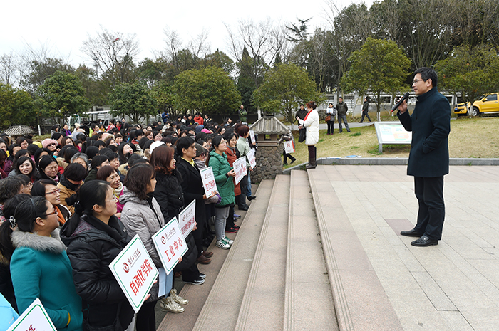 阳春三月,百花绽放;登山踏青,欢乐融融。3月9日下午,我校一年一度的“庆三八?方山健身行”活动在方山地质公园举行。校党委书记吴建华、曹雪虹副院长以及全校560多名女教职工热情参与了此次活动。校党委副书记、纪委书记刘志远也来到活动现场,为南工程的“女神”们送去诚挚的问候和温馨的祝福。