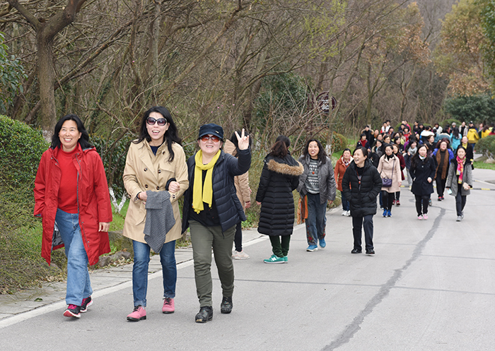 虽然初春的南京春寒料峭,乍暖还寒,但依旧没有阻挡所有登山女教职工的热情。随着吴建华书记的鸣枪发令,各个队伍踏着欢快的脚步向山顶目的地出发。一路上,大家时而谈笑风生,时而极目远眺,时而相互勉励,时而驻足合影;在欢声笑语中,大家沿着蜿蜒的山路,沐浴着春天的阳光,向山顶行进,沿途享受着春意融融、生机勃勃的方山美景。