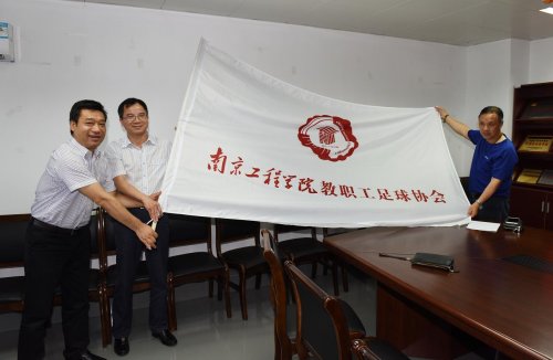 最后,郑锋副校长为bet365提款时间教职工足球协会授旗,并和全体会员合影留念。