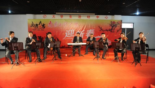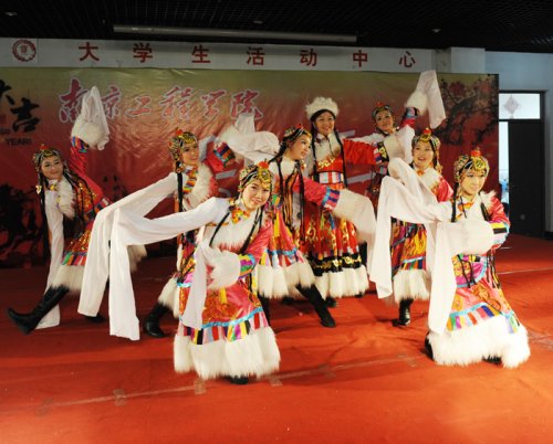 随着器乐合奏《骏马奔驰保边疆》的乐声响起,由学校各单位、各艺术团体选送,教职工自编自演的文艺节目陆续登场。节目形式多样、创意新颖、精彩纷呈。江苏省演艺集团京剧院国家一级演员李洁和我校老师合作表演的京剧选段《智斗》以其非凡的唱功赢得满堂喝彩;歌曲《滚滚长江东逝水》、《高原蓝》、《青藏高原》、《好日子》唱出了教职员工对大好河山的热爱和对美好未来的憧憬,舞蹈《留恋草原》、《梁祝》、《茶山情歌》、《掀起你的盖头来》、《青春活力》舞出了韵味、舞出了活力;小品《三打白骨精》则恢谐幽默,令人捧腹。在一派欢乐喜庆、温馨和谐的节日氛围中,大家分享着幸福,传递着希望,共同展望学校和谐向上、硕果累累的美好明天。