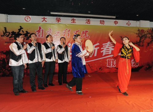 联欢会上,党委书记吴建华首先代表学校党政向勤勉工作的广大教职员工致以诚挚的感谢和新春的问候。她说,2013年是学校事业发展蒸蒸日上的一年,党的群众路线教育实践活动深入人心,学校的面貌焕然一新,所有的成功归结为两个字就是“和谐”,“家和万事兴”、“团结就是力量”,风清气正、求真务实、民主和谐、团结奋进的环境为学校的发展注入了源源动力。马年奔腾而来,承载着新的希望、新的梦想,也意味着学校事业的进一步跃步腾飞。学校第二次党代会召开在即,学校党政已将“深化内涵建设、彰显办学特色”作为党代会的主题和学校今后几年的发展方向。她希望全校教职员工在新的一年团结一致,开拓进取,以更加饱满的精神、更加昂扬的斗志在实现中国梦、南工梦的征程上策马扬鞭,谱写新的辉煌。